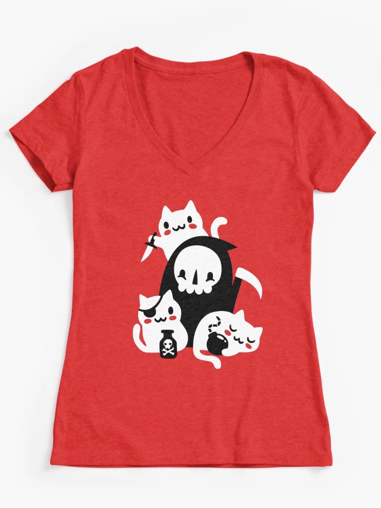Be the first to review “Death’s Little Helpers Fitted V-Neck T-Shirt” Cancel reply